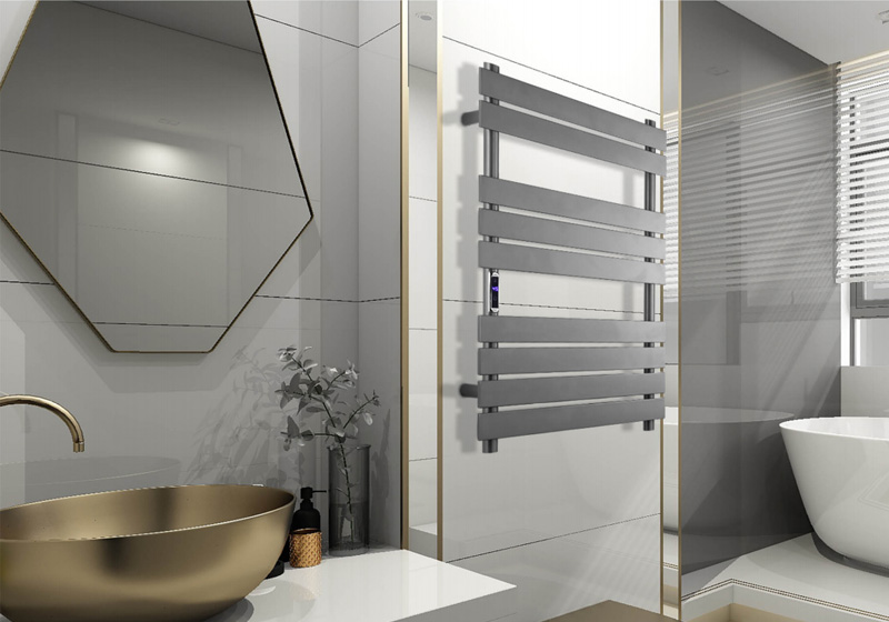 9桿時控溫控開關電熱毛巾架 9 bar time and temperature switch hea ed towel rail 材質(zhì)Material:SS201/SS304 功率Power:220V/190W 表面Surface:Gun Black Painted 槍黑噴塑 尺寸Size:560*120*725mm 包裝Ctn size:580*70*760mm